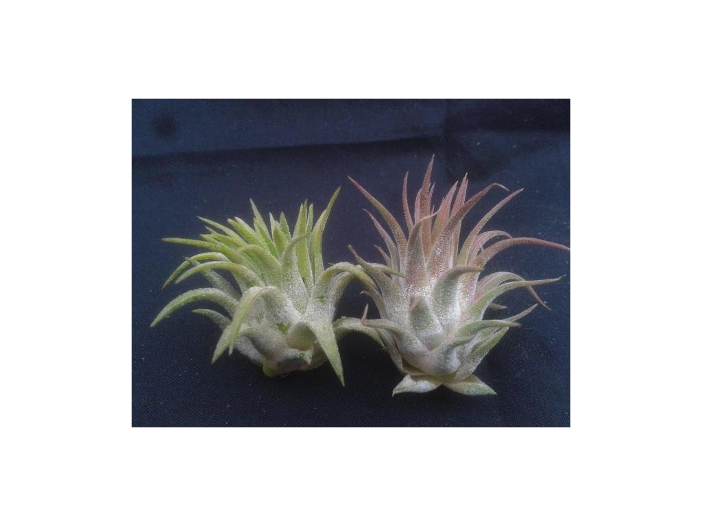 Tillandsia ionantha Planchon. Jedná se o pravděpodobně nejrozšířenější, nejznámější a jednoznačně pěstitelsky nejjednodušší druh. Snadno se přizpůsobí většině podmínek a přestojí i většinu začátečnických přehmatů. Kvete růžovo fialově.
